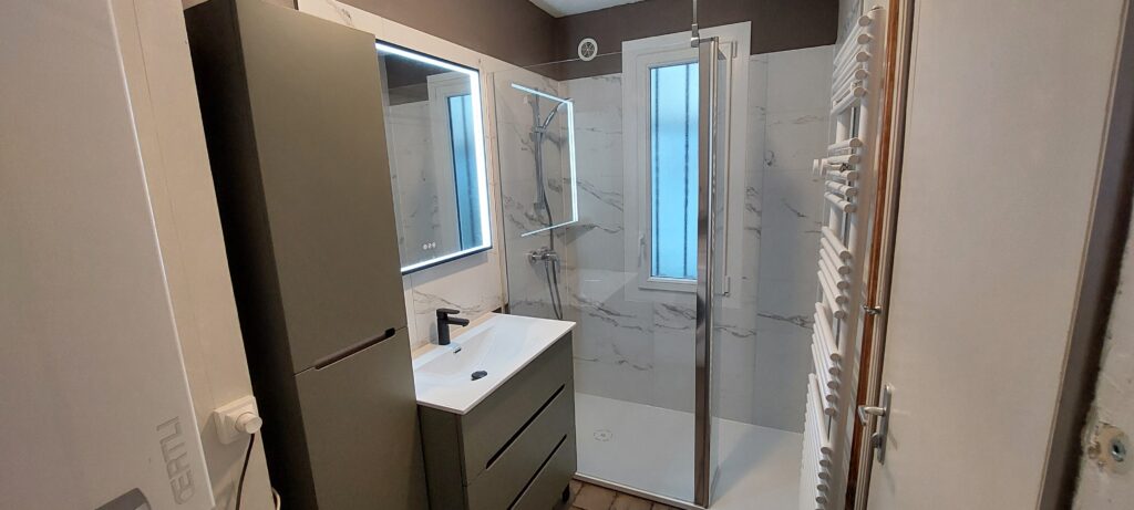 - Réalisation/création de salles d’eau, de bains, douche à l’italienne, WC